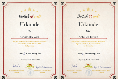 A 8. évfolyamos tanulók idén is sikeresen teljesítették a DSD (Deutsches Sprachdiplom) nyelvvizsgát, amely a német nyelv magas szintű elsajátításának egyik legrangosabb nemzetközi visszaigazolása. Büszkék vagyunk diákjainkra, akik kitartással és szorgalommal készültek fel a vizsgára. Köszönjük a felkészítő pedagógusok munkáját is!